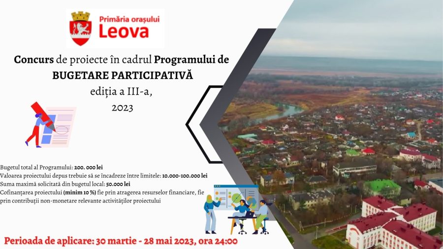 Programul de Bugetare participativă continuă la de-a III-a ediție pentru anul 2023 și își propune implicarea cetățenilor orașului Leova într-un proces democratic pentru stabilirea modalității optime de valorificare a surselor financiare din bugetul local.