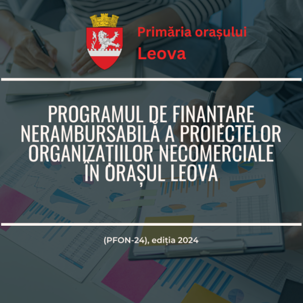 Consiliul orășenesc Leova anunță lansarea Concursului de finanțare nerambursabilă a proiectelor organizațiilor necomerciale în orașul Leova în cadrul Programului de finanțare nerambursabilă a proiectelor ON în orașul Leova, ediția 2024 (PFON-24).