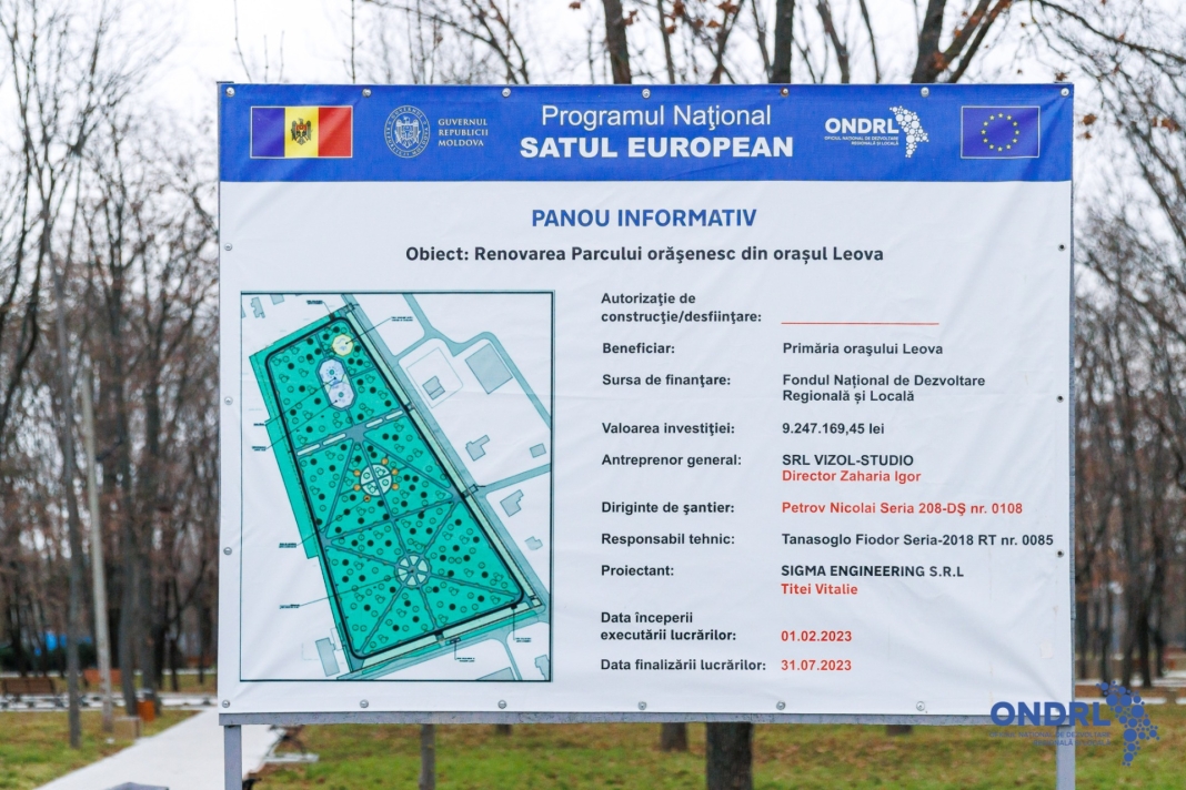 Astfel, proiectul intitulat „Îmbunătățirea și dezvoltarea infrastructurii de agrement și a zonelor de petrecere a timpului liber pentru locuitorii și vizitatorii orașului Leova, prin modernizarea și amenajarea Parcului orășenesc” a prevăzut crearea unor spații moderne de agrement, dotate cu echipamente de joacă pentru copii și aparate de fitness, precum și instalarea a 70 de bănci, inclusiv amenajarea unor zone speciale pentru plimbarea animalelor de companie. De asemenea, proiectul a inclus amenajarea căilor de acces cu pavaj, construirea unor piste pentru bicicliști, montarea unui gard metalic decorativ și plantarea de flori și arbuști pe întreaga suprafață a parcului, care se întinde pe 3,5 hectare.
